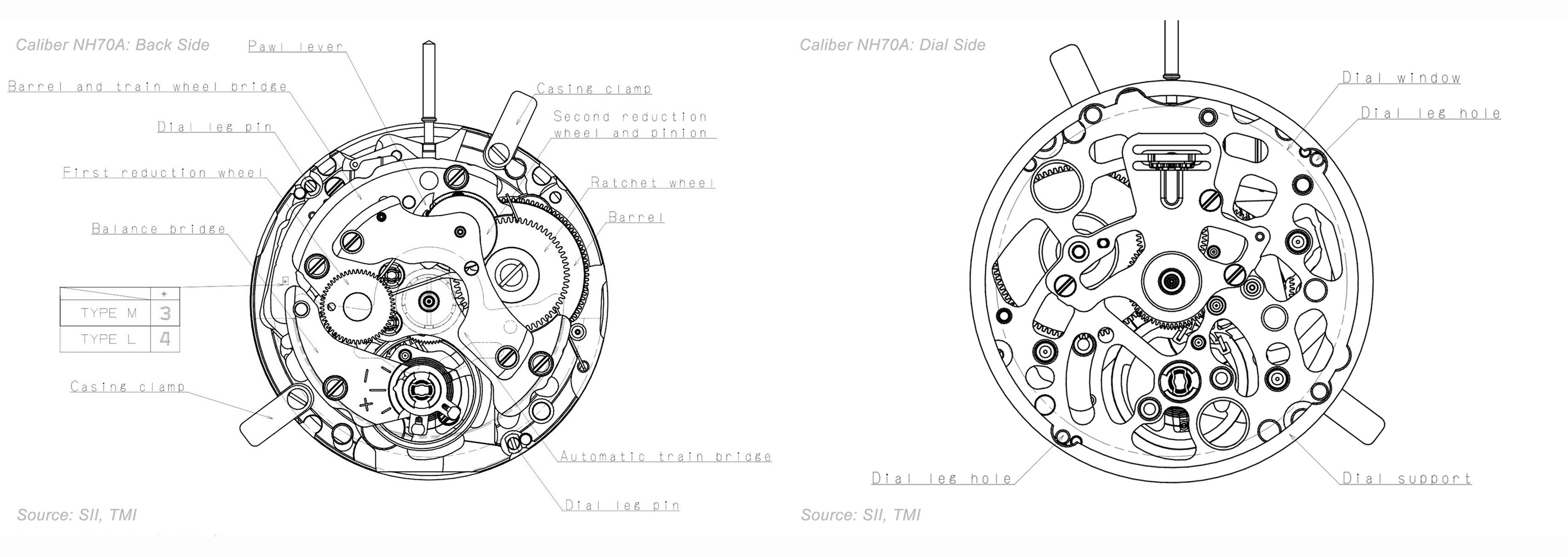 At the heart of this watch sits the NH70A automatic movement from Seiko Instruments. It is a proven workhorse used by modders and budget brands worldwide.