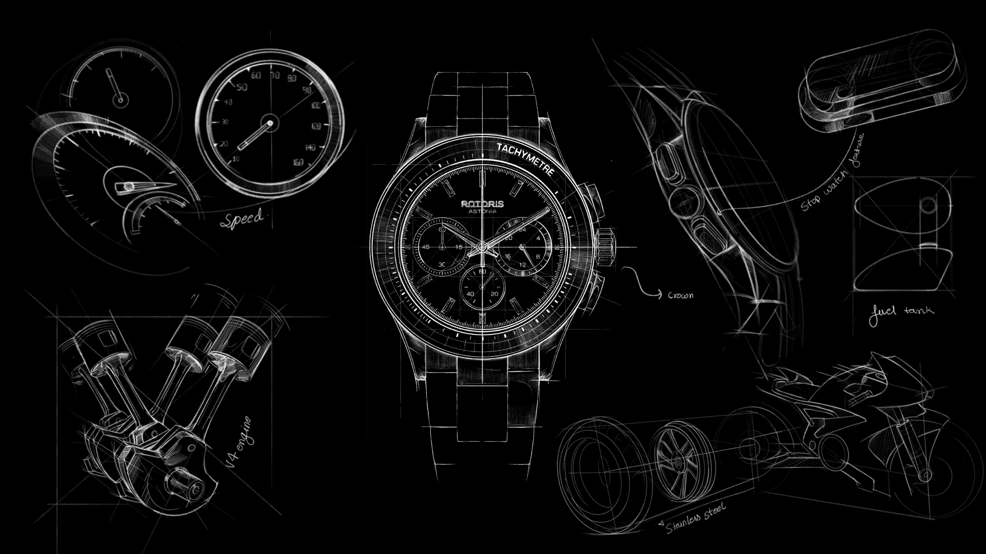 Astonia is designed around speed and motion, translating racing energy into a functional chronograph.
